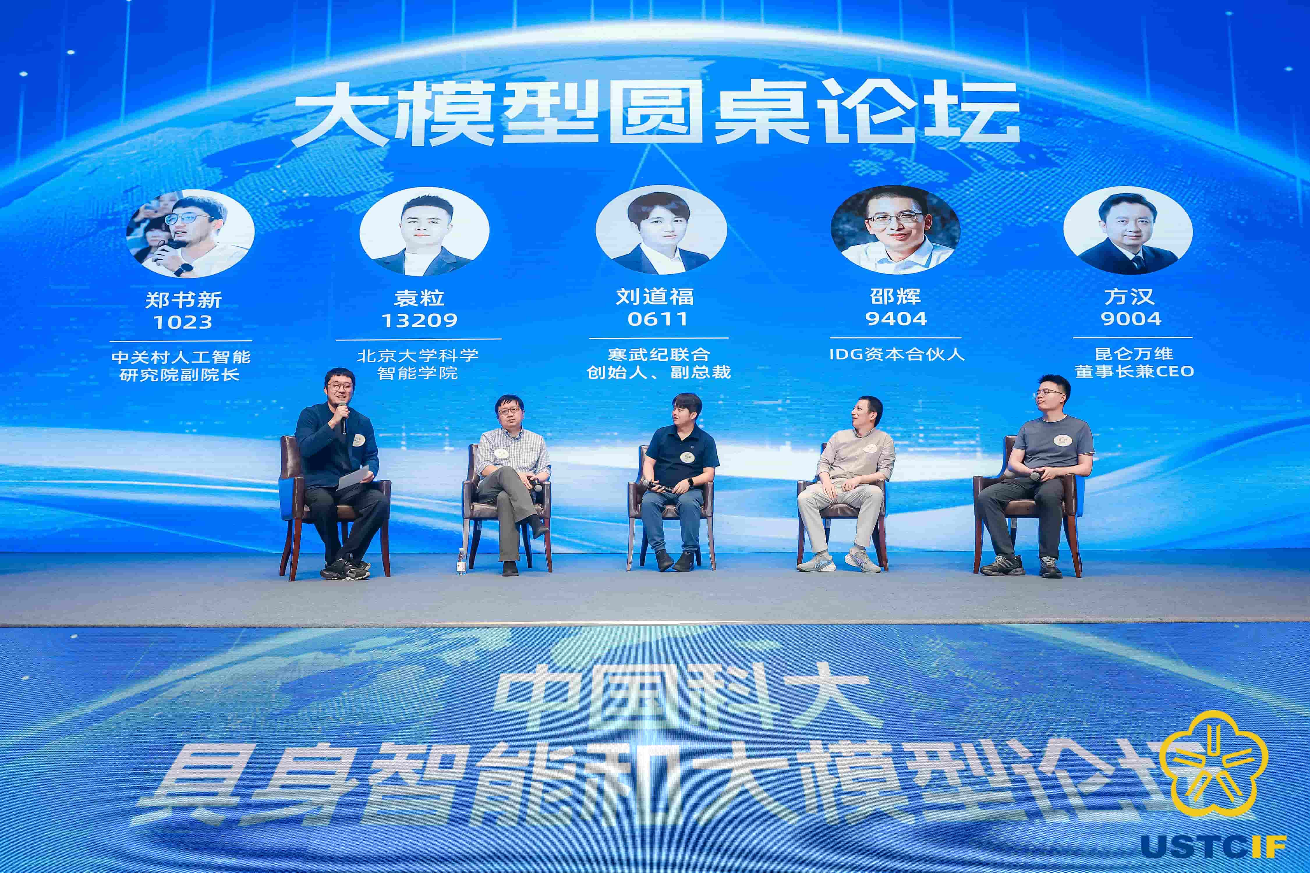 中关村人工智能研究院副院长郑书新(1023)主持大模型Panel。嘉宾为袁粒(13209,北京大学科学智能学院);邵辉(9404,IDG资本合伙人);方汉 (9004,昆仑万维董事长兼CEO)。
