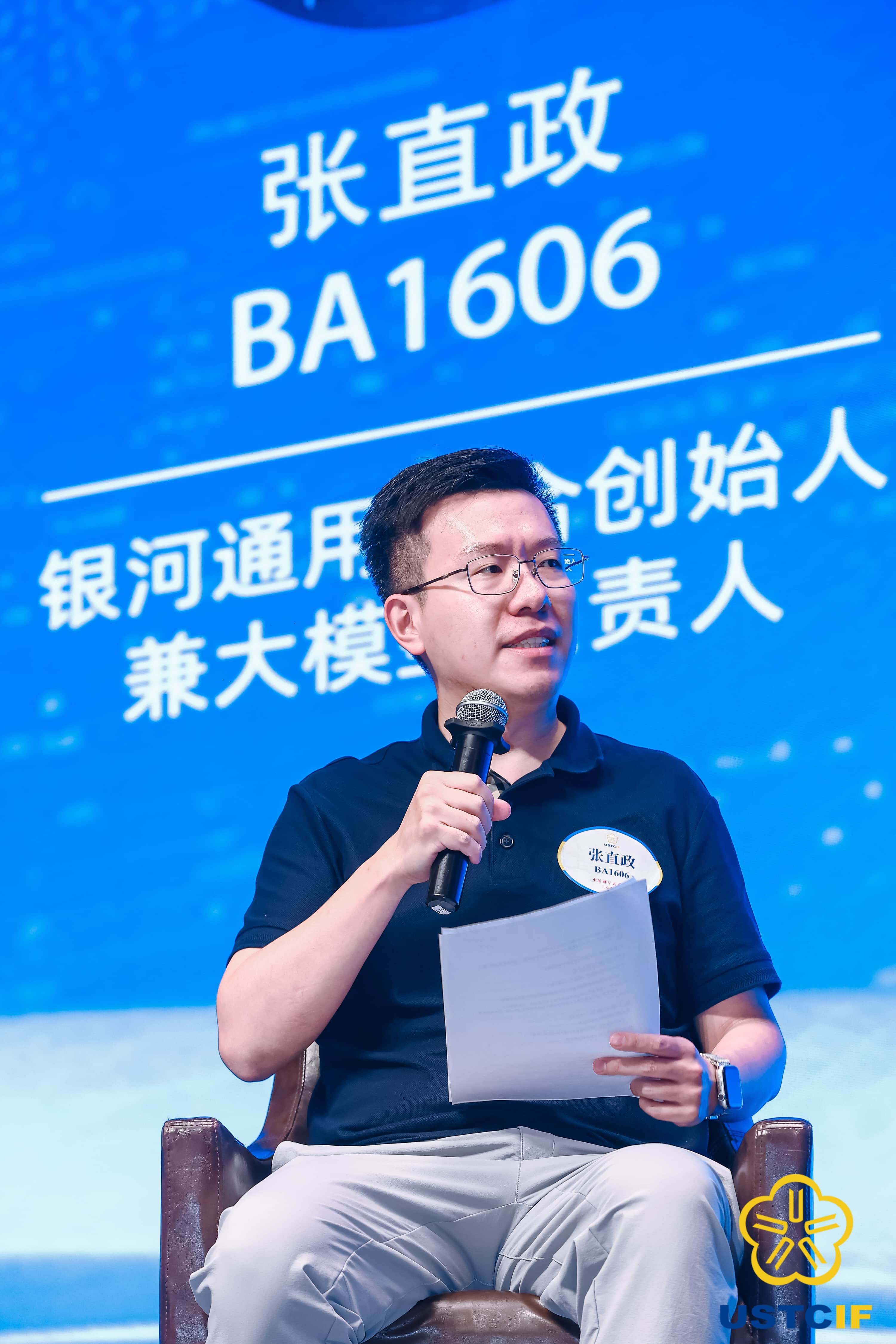 论坛设立了具身智能与大模型等两个圆桌讨论(Panel Discussion)环节。银河通用联合创始人兼大模型负责人张直政博士(BA1606)担任具身智能(机器人)Panel主持人。嘉宾为张世武(9209,中国科大工程科学学院副院长)、戴若犁(9705,诺亦腾机器人创始人、CEO)、刘涛(0006,金山云高级副总裁)、季超(1509硕,聆动通用机器人科技CEO)。
