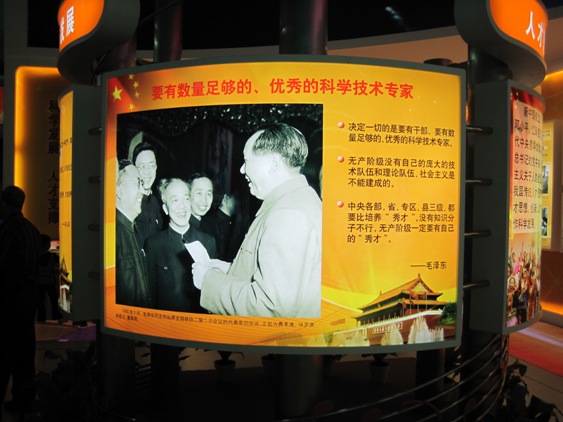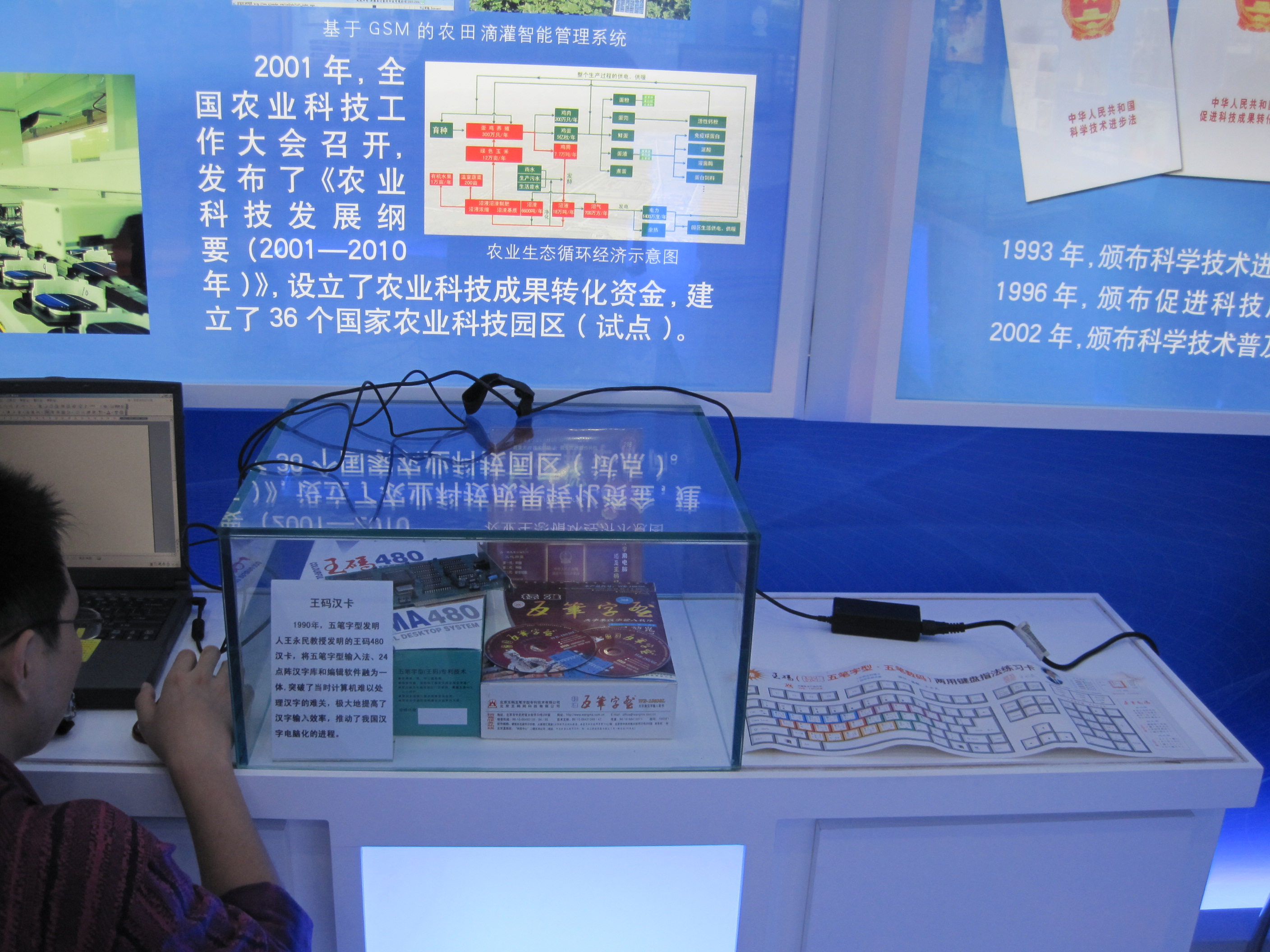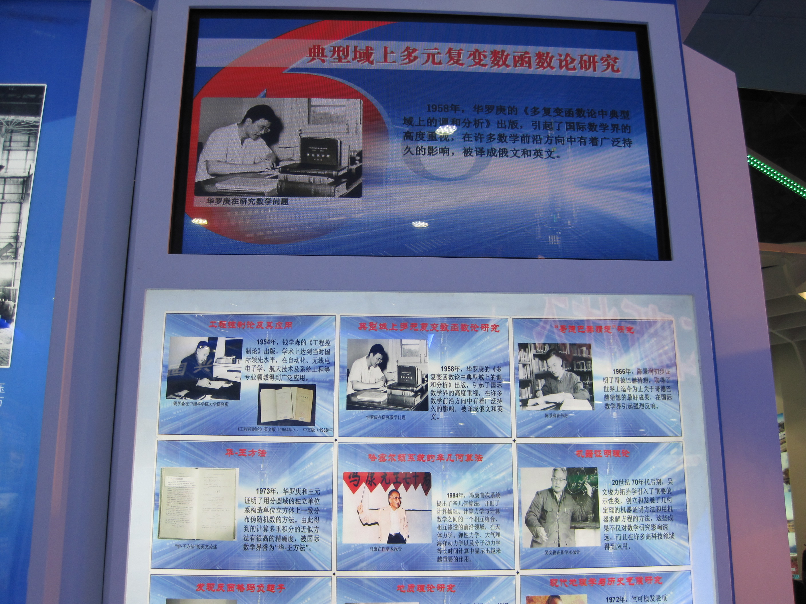 中国拥有自主知识产权首颗通用CPU——龙芯在展览不同地区出现多次。龙芯项目首席科学家胡伟武为8611校友,其团队中国科大年轻校友堪称中流砥柱。龙芯团队中有约20名科大校友。中图为龙梦笔记本电脑,出品商江苏龙梦公司总经理为张福新(9500),为龙芯研发团队核心成员,连续当选中国科学院、江苏省、苏州市、常熟市十大杰出青年。而右图为龙芯笔记本电脑再次出现在综合展区经济成就版块。