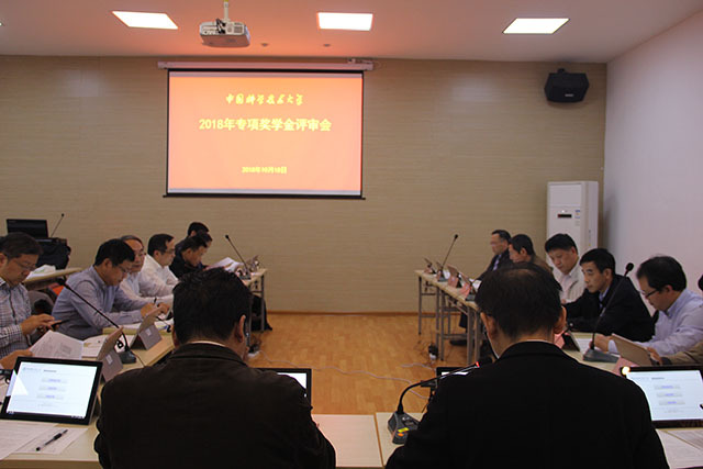 2018年10月18日下午,2018年度专项奖学金评审会在中国科大物理学院二楼会议室召开,校党委副书记、校学生专项奖学金评审委员会副主任蒋一等校学生专项奖学金评审委员会17名委员参加了评审会。会议由蒋一副书记主持。