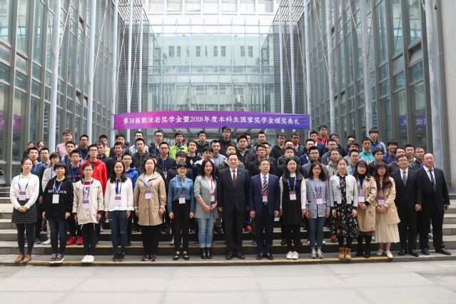 2019年3月30日下午,第38届郭沫若奖学金暨2018年度国家奖学金颁奖典礼在东校区理化大楼西三报告厅举行。33名同学获得第38届郭沫若奖学金,101名本科生获得2018年度国家奖学金。