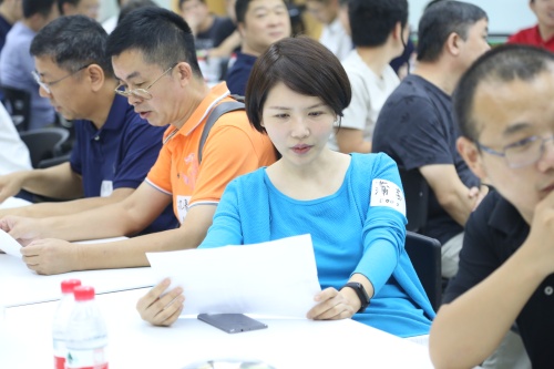 蒲茜(00少)等校友阅读会议材料中。